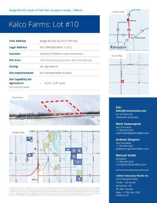 GD Auctions & Appraisals in Conjunction with Colliers is excited to bring you the Kalco Farms Ltd. Unreserved Timed Online Real Estate Auction. Featuring 10 Agriculture Land Lots including a complete Grain Handling operation as well as 3 Lots with Homesteads.