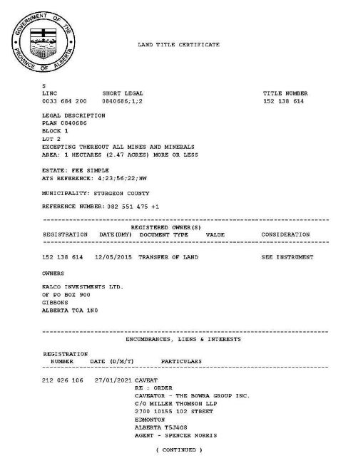 - UNRESERVED AUCTION. The Properties may be offered for sale in an online auction, and may be sold to an approved bidder in the Vendor’s absolute discretion. Any sale of a Property or the Properties is subject to the approval by the Court of Queen’s Bench of Alberta in Court File Number 2003 15829 (“Court Approval Condition”). There shall be no requirement for a minimum bid or reserve price (the “Kalco Unreserved Auction”).