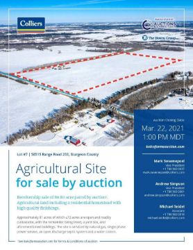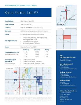 GD Auctions & Appraisals in Conjunction with Colliers is excited to bring you the Kalco Farms Ltd. Unreserved Timed Online Real Estate Auction. Featuring 10 Agriculture Land Lots including a complete Grain Handling operation as well as 3 Lots with Homesteads.