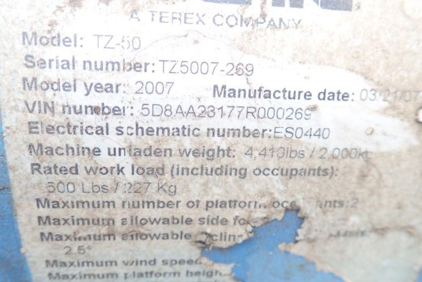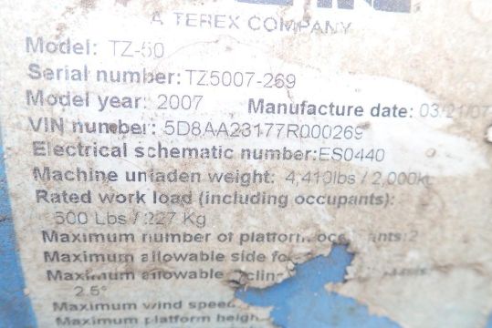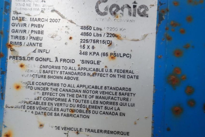 2007 Genie TZ-50 Single Axle Towable Boom Lift w/ 500lbs Capacity, Outriggers, Ball Hitch, 225/75R15 Tires, Showing 514hrs.