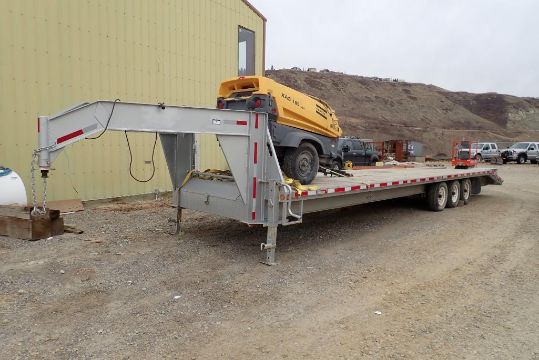 2014 ABU Tridem Axle Gooseneck Flatdeck Trailer w/ Beavertail, Ramps, 36' Deck, 235/80R16 Tires, ProSeries Breakaway System.
