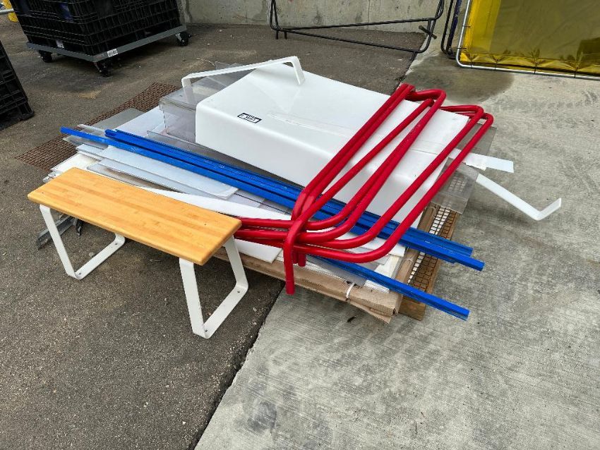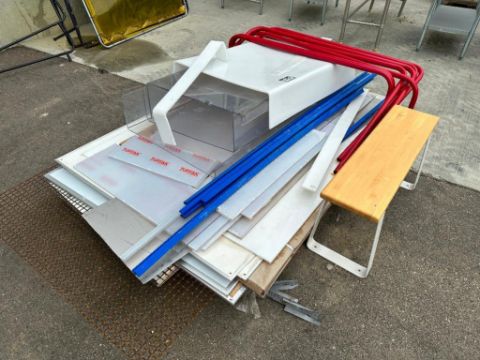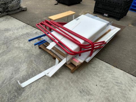 Pallet of Asst. Whiteboards, Plastic Sheets, Metal Mesh, Etc.