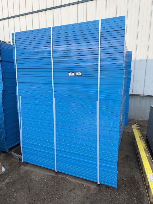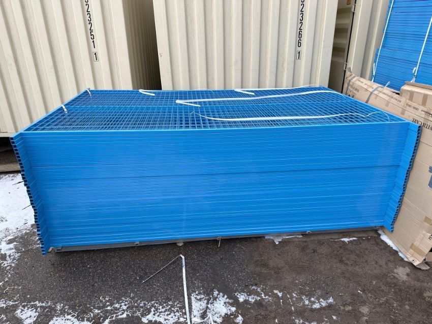 Lot of New (45) 9-1/2”’X6’ Galvanized/Powder Coated Construction Fencing Panels w/ Top Clips and Bottoms Stands