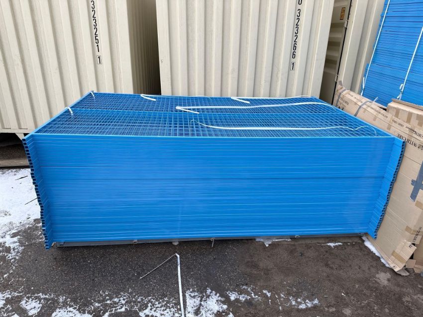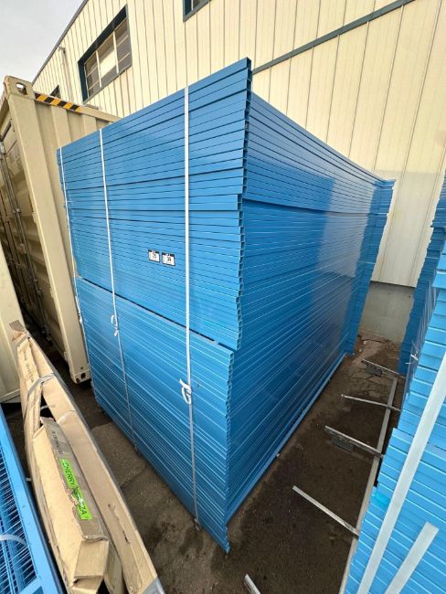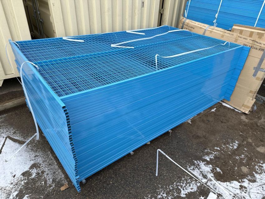 Lot of New (45) 9-1/2”’X6’ Galvanized/Powder Coated Construction Fencing Panels w/ Top Clips and Bottoms Stands