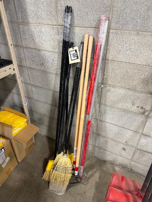 Lot of Asst. Brooms, Scrapers, Handles, etc.