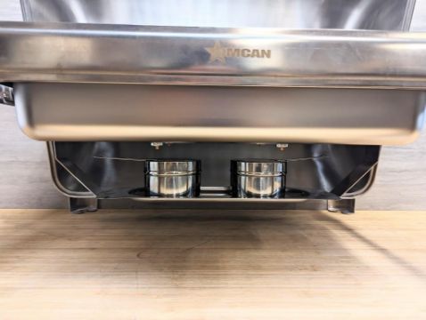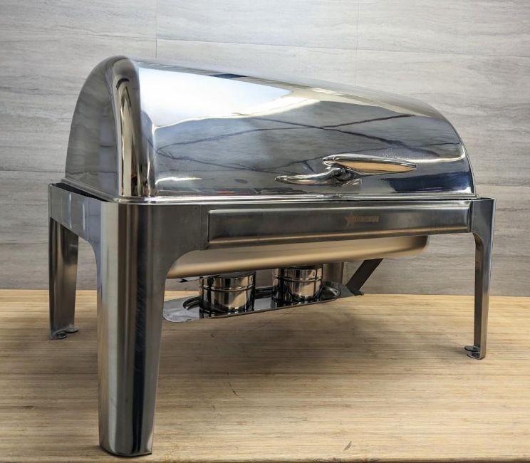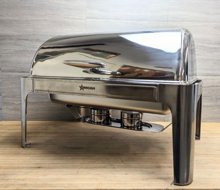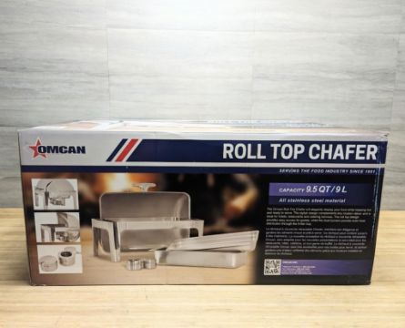 NEW 9.5 QT STAINLESS STEEL ROUND CHAFING DISH WITH ROLL TOP COVER - OMCAN 41821