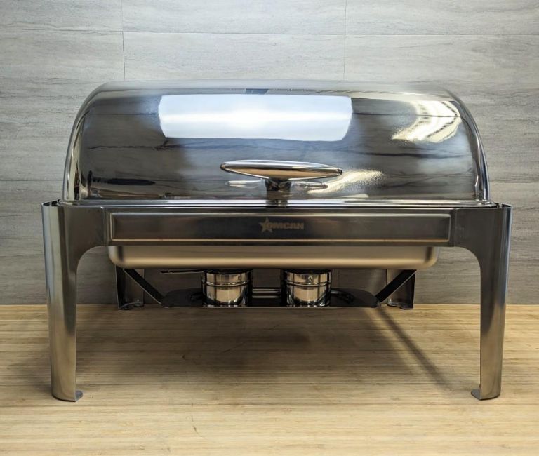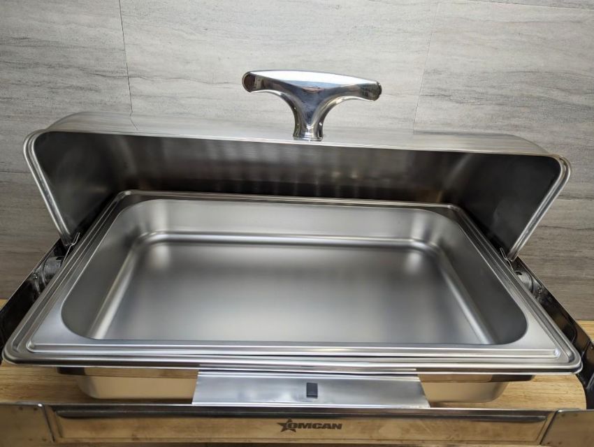 NEW 9.5 QT STAINLESS STEEL ROUND CHAFING DISH WITH ROLL TOP COVER - OMCAN 41821